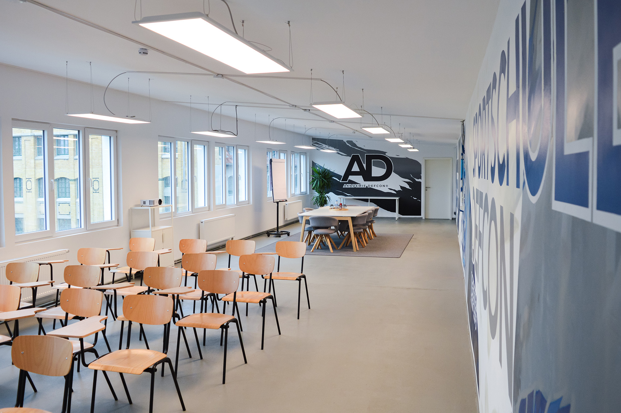 Im Seminarraum unseres Headquarters vermitteln wir wichtige Grundlagen zu Gefahrenwahrnehmung, Deeskalation, rechtlichen Rahmenbedingungen sowie psychologischen Aspekten von Gewalt und Stressreaktionen.